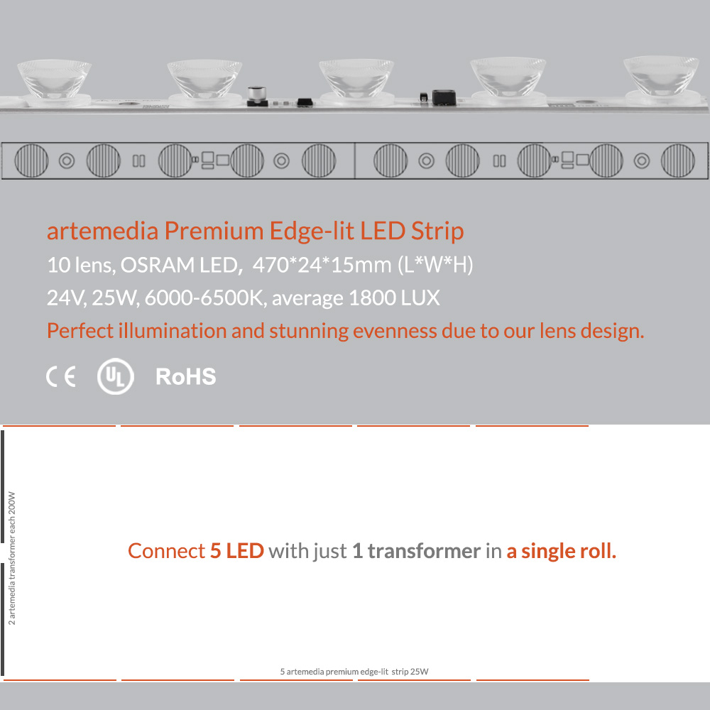 artemedia LED parts, prepared for immediate use, including all plugs and connectors pre-installed. Plug and play.